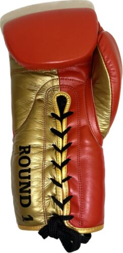 We call this the Iron man edition Red and gold colours, made with pure cowhide leather, Laced up nice and tight is just right for the perfect punch in sparring. (comes with a glove bag).